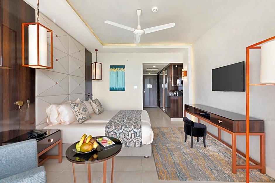 Swim up garden view includes a king-size bed 150-183 width and is Wheelchair-accessible.